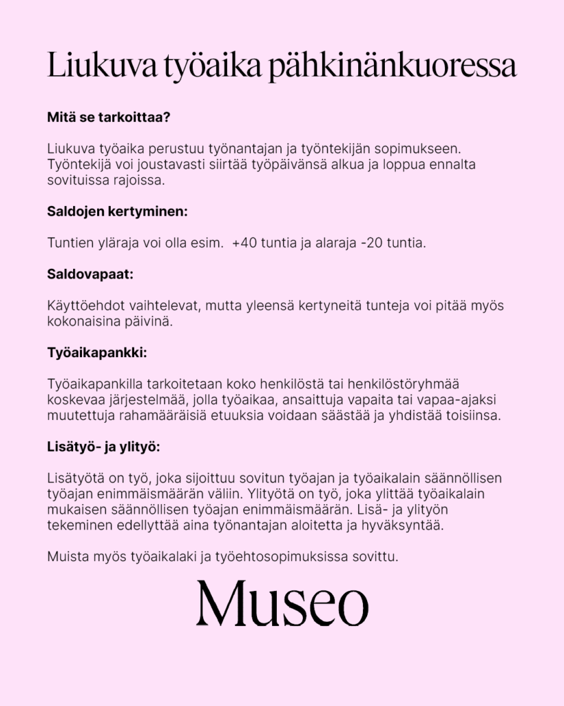 Joustavuuden rinnalla nousi esiin huoli tiukoista saldorajoista. Monilla työpaikoilla kertyville tunneille on asetettu enimmäismäärä, jonka ylittävät tunnit eivät enää kerry. Kun työtehtävät edellyttävät venymistä, rajat voivat johtaa tilanteisiin, joissa tehty työ jää ilman korvausta. (Näinhän ei saisi tapahtua!).