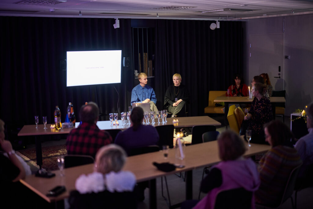 Ilta alkaakin alkoholittomalla kuohuvalla ja jatkuu nuorten valokuvataiteilijoiden esityksellä ja valokuvien inspiroimalla teospajalla. Nuoria näkyy paljon myös vieraissa.